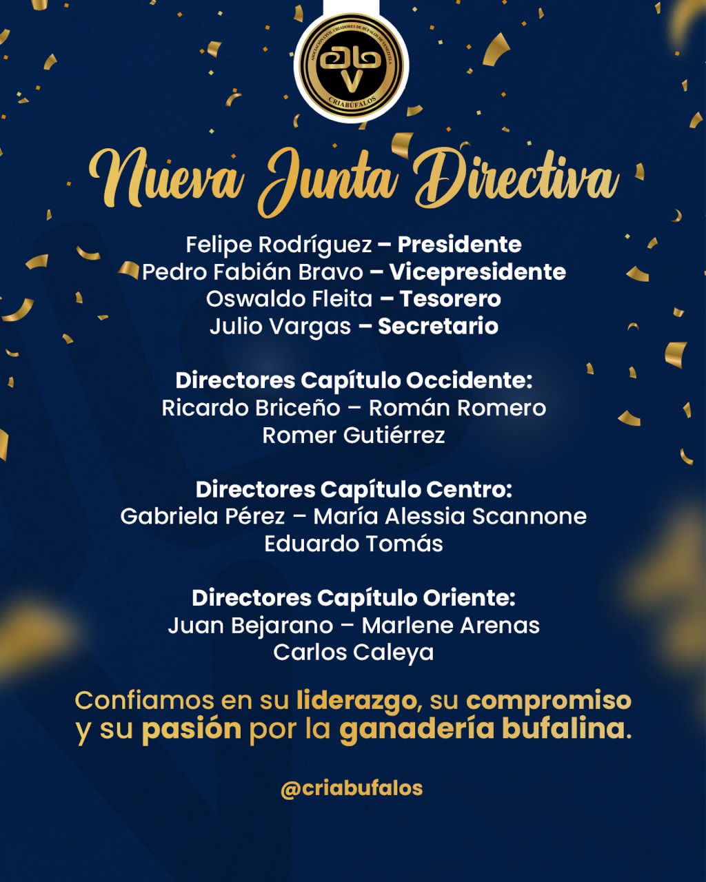 Y en el marco de la III Feria Nacional se realizó la Asamblea Eleccionaria de Criabufalos donde resultó juramentada la nueva Junta Directiva para el período 2025-2027, presidida por el Sr. Felipe Rodríguez, y acompañado por los Sres. Pedro Fabián Bravo, Oswaldo Fleita y Julio Vargas. Les deseamos el mayor de los éxitos en su gestión.