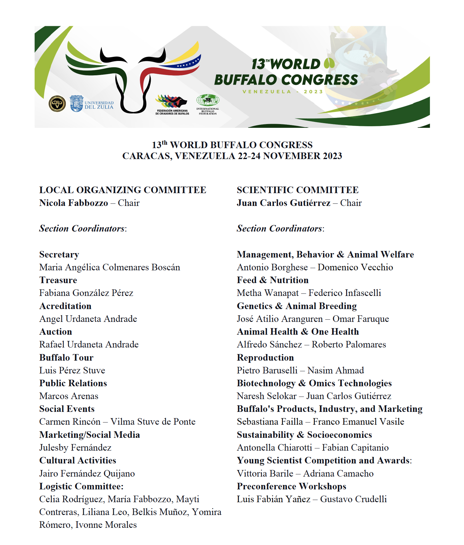 COMITES DEL CONGRESO Conoce el Comité Organizador y el Comité Científico del 13er Congreso Mundial del Búfalo. Puedes además descargar el listado haciendo click en este enlace.