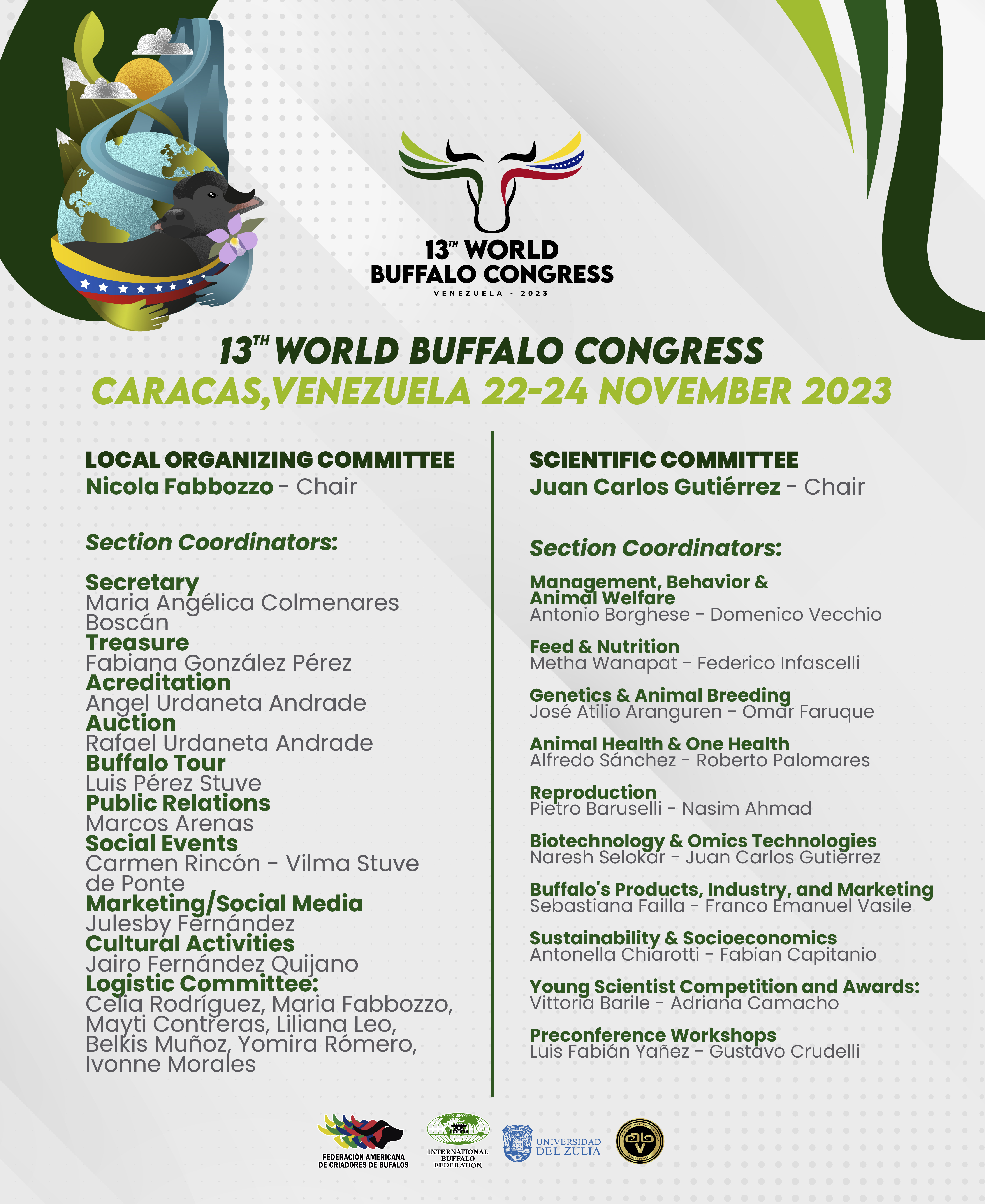 CONGRESS COMMITTEES This is the Local Organizing Committee and the Scientific Committee for the 13th World Buffalo Congress. You can as well download this info clicking this link.